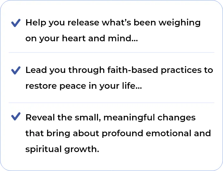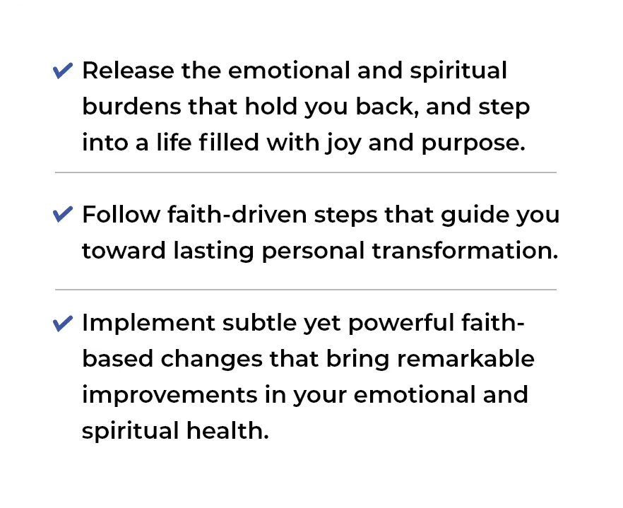 Second, I know the real value of what’s inside. It’s filled with the exact steps that helped me break free from the burdens that weighed me down, and I’m confident it can do the same for you.